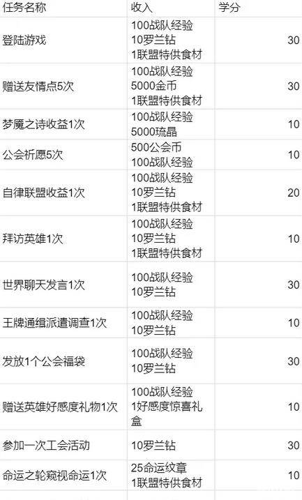 PS:学分每满250可以领取一张英雄征募券,每周学分积累到一定程度也可以领取奖励。