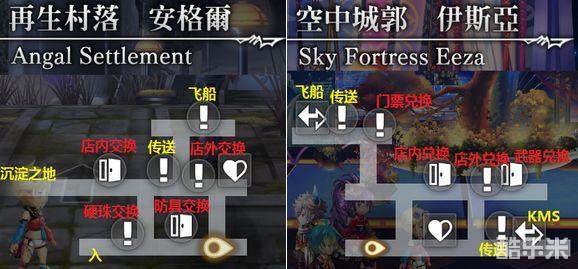 空中城郭右上屋内,可兑换刀斧枪锤(海洋武)各1,每个需要40矿+1种特定素材,特定素材分别位于上述4个地图中(紫色光点),免费的3个地图要分别用道具(6矿兑换)开路后获取,体育场只要打败FEAR就能从其身后取得。