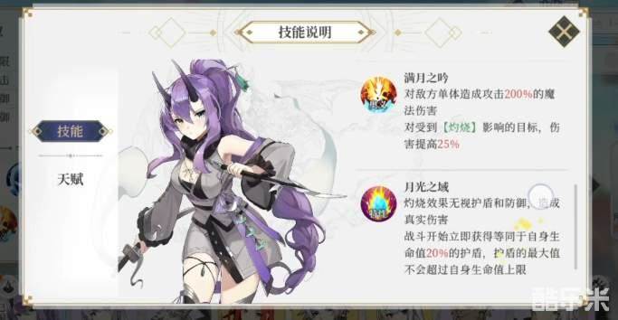 1、SSR胧月是强势的单体单体输出角色,她的技能可以给灼烧敌人,持续消耗敌人血量 ,攻击无视敌人的护盾和防御,伤害能力强悍。