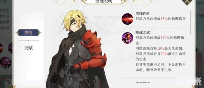 3、噬魂之式:对敌方造成170%物理伤害,消耗 自身10%最大生命值,对敌人造成自身20%最大生命值的伤害。如果自身生命值不足,则不会消耗也不会生效。
