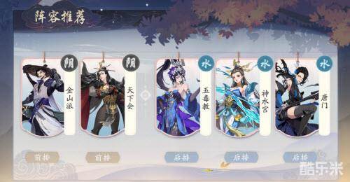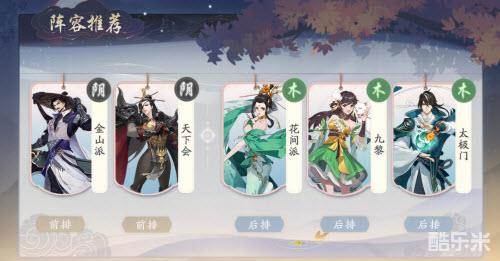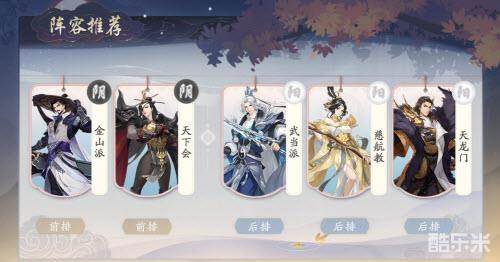 金山派加上天下会两个强硬前排,能在前面吸引敌方的火力,并且金山派也能够压低敌方前排侠客的血线,给武当派和天龙门足够的启动时间和输出环境,同时慈航教还有着强大的续航能力,能保证伤害打得充足,且前排站得更久,而且敌方也很难切入!