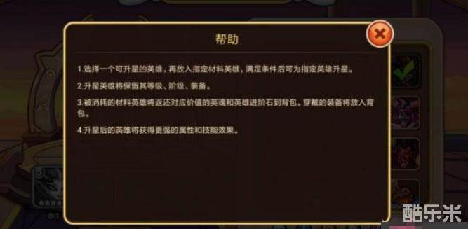 另外说明一点升星之后的英雄会保留其等级、阶级、装备。所以玩家们不必担心重头再来,还有被消耗的材料英雄将返还对应价值的英魂和英雄进阶石到背包,穿戴的装备也将会放回背包。