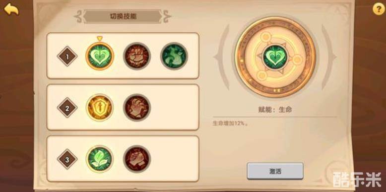 赋能选择为:生命赋能、庇护赋能、深深不息赋能