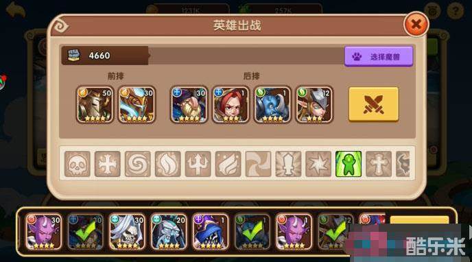 它叫纯色光环,就是上阵同属于一个阵营的英雄;比如我们可以上阵六个幽暗阵营的英雄,下面图片中分别是梦魇骑士、格伦、俩个冰巨魔、黑暗牧师和毒舌。他们属于一个阵营,同时上阵就可以获得幽暗阵营的纯色光环,幽暗光环会为我方全体队员增加20%的破甲和20%的血量。其他五个阵营的纯色光环也是同样道理,只要上阵的英雄同属一个阵营就可以。