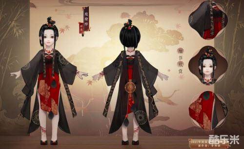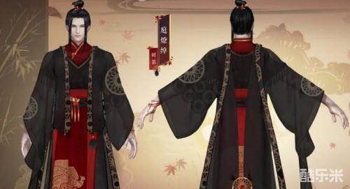 成男少侠身披黑色薄纱外袍,纱衣与衣带上的金纹,象征着吊挂皮影的细线,红金配色的裙摆更是令人眼前一亮!