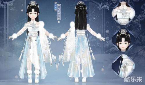 清霜染涧树,萧索向严冬。整套时装·风烛霜清以白青配色为主,又用华贵皮草搭配绢丝锦缎,其间闪闪发光的银质配饰,更显得少侠们清冷俊逸、超凡脱俗。