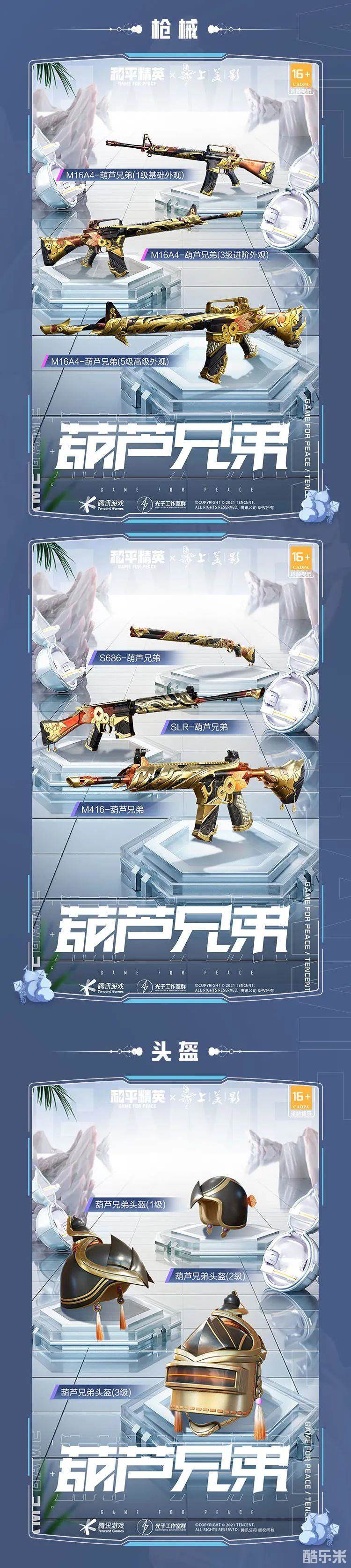 2、枪械皮肤:M16A4-葫芦兄弟(进化枪)、S686-葫芦兄弟、SLR-葫芦兄弟、M416-葫芦兄弟;