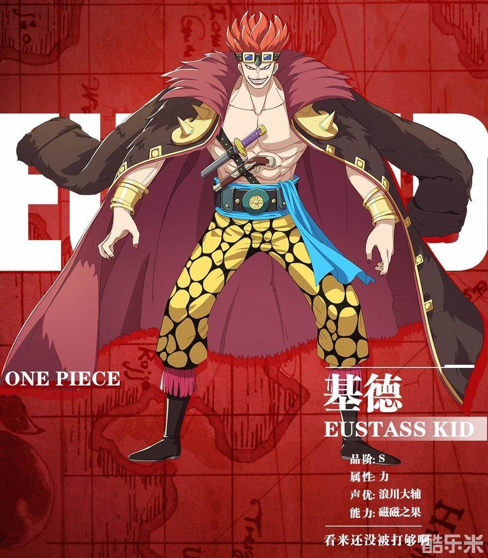 基德,超新星中悬赏金最高的船长,磁磁果实能力者,可以吸附刀剑及枪炮等金属,是脾气暴躁的好战者。