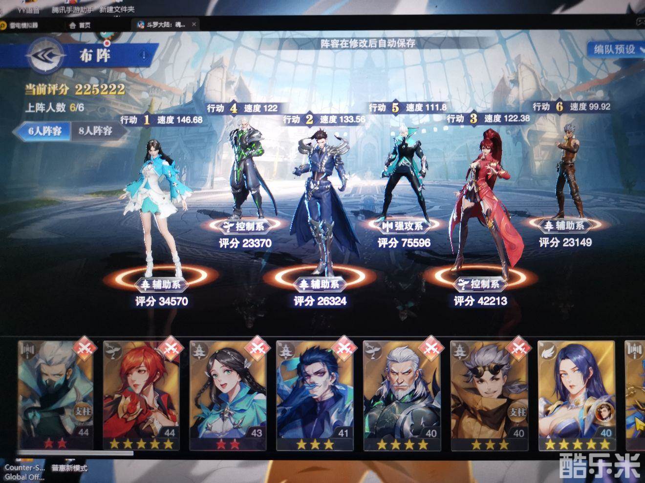 阵容如图,细节第一回合火舞一技能可以刷晕三到五个,对面火舞比比东必须要晕到,然后荣荣拉条鬼魅拉条,独孤博平A二龙,,风笑天四技能极速,对面戴沐白这里要平A荣荣,因为荣荣最多受伤40%血