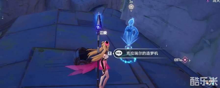 1、玩家咋探索世界的时候有可能会遇到造梦机NPC,如下图所示这个名为克拉瑞尔的造梦及就是了,与其对话即可开启虚拟梦境挑战;