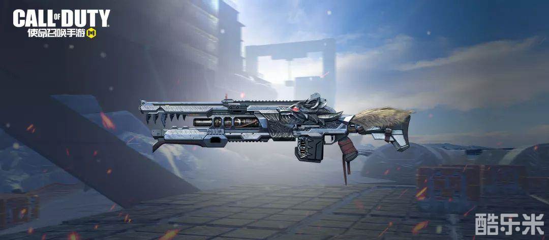 在S13使命手册中的Man O War-猎物时刻,将原本包裹枪管的前护木做了半裸露处理,使其在高速连射的时候也能有效控制枪管温度。而上下分离的枪身上所镶嵌的獠牙,和枪械机匣上咧嘴咆哮的狼首,以及枪托上的棕毛相互辉映,在银白色枪身的配色之下,一只雪狼跃然枪上。