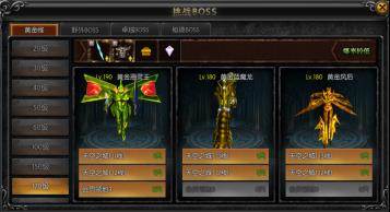 打开【挑战BOSS】页面,映入眼帘的是四个BOSS的分块,分别为黄金怪、野外BOSS、卓越BOSS及秘境BOSS。挑战BOSS页面是为了方便大家查看BOSS、直接点击寻路使用的,避免过度搜寻影响大家体验。