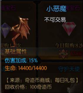 守护天使与小恶魔装备是天使之战的两大特色装备之一。目前这两种装备仅限于在商店中购买,玩家需要消耗8000奇迹币可以购买任意一件。当然玩家也可以通过每日礼包或者首冲进行购买。