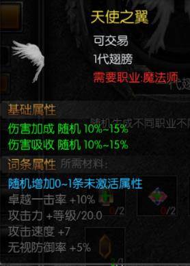 注(翅膀是可以进行升级的,参考道具合成攻略中翅膀一栏)