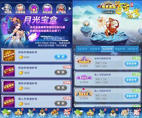 《道友请留步》中同样有着“月光宝盒”,它带来了过去的曾出现过的限时称号,虽然每周只能购买一次,但是坚持到底,总有集齐的一天的!每个称号都会为道友们带来大量的属性上涨,价格不贵,战力提升看得起,怎么能不买买买!