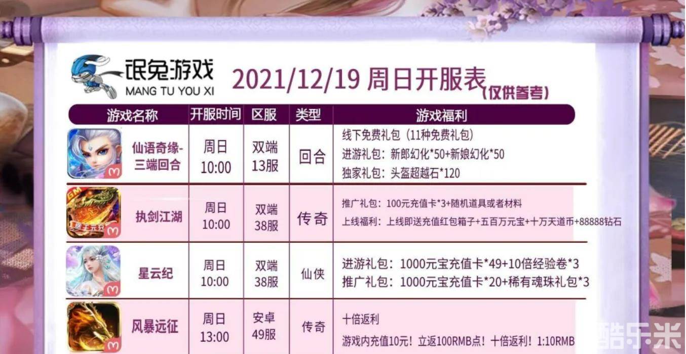 | 青丘奇缘 | 青丘25区( 苹果- 安卓) | 2021-12-19 11:00:00 |