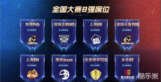 经过这三个月时间的精彩追逐,从十大赛区最终脱颖而出的八支战队分别是:东莞Pdh、深圳企鹅MD、上海HH、深圳斗鱼YGD、上海BM、西安moon、北京快手TCG和太仓09。目前这些战队中北京快手TCG战队积分榜排名第一,太仓Q9战队积分排名第二。这些战队将要在12月22日-12月26日,开始角逐四强、半决赛和总决赛的名额。