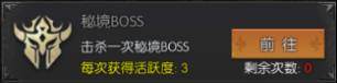 每击杀一次秘境boss可获得3点活跃度,点击前往可快速选择秘境boss地图