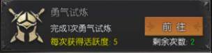 每完成一次勇气试炼可获得5活跃度,点击前往可快速进入挑战