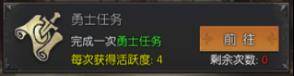 每完成一次勇士任务可获得4活跃度,点击前往可快速打开勇士任务界面