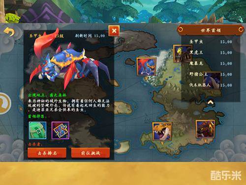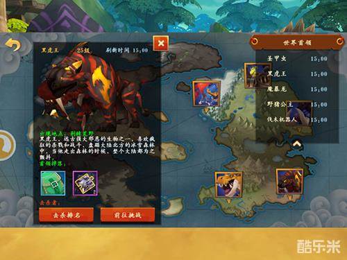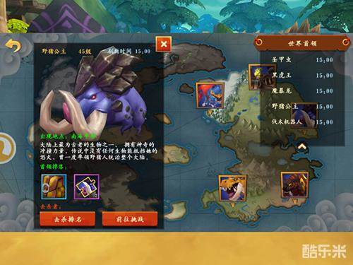 五大BOSS全部精心设计,在游戏中的背景介绍可以了解到它们的简短故事,如,野猪公猪是大陆上最为古老的生物之一,拥有神奇的冲撞力量,传说中没有任何生物能够抵挡她的怒火,曾一度率领野猪人统治整个大陆。类似的还有圣甲虫是迪菲亚兄弟会供奉的圣虫,黑虎王是北方冰雪森林的远古邪恶霸主。了解更多详情,一起来玩吧。