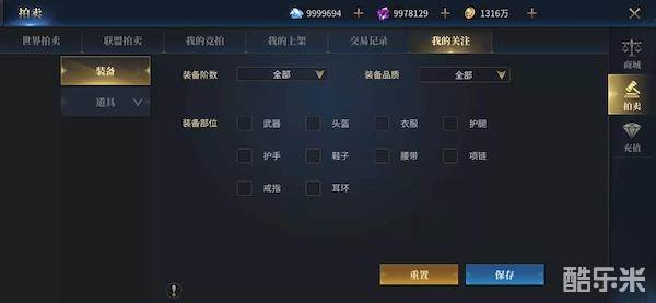 在我的关注界面,玩家可以根据需求快速选择不同类型的装备,也可以选择除装备之外的部分其他道具