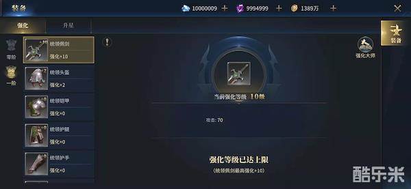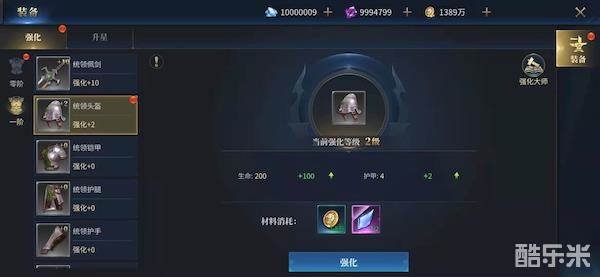 转生任务一:装备强化任务,可以消耗金币和强化水晶对装备进行强化。单一装备强化等级最高为10级。