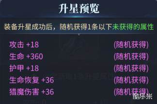 装备升星会消耗同部位的装备,当升星装备不足时,可从交易行购买该装备完成升星,随着星级升高,升星消耗的部位装备数量也越多。升星不仅可以增加装备的基础属性,还可以获得附加属性。