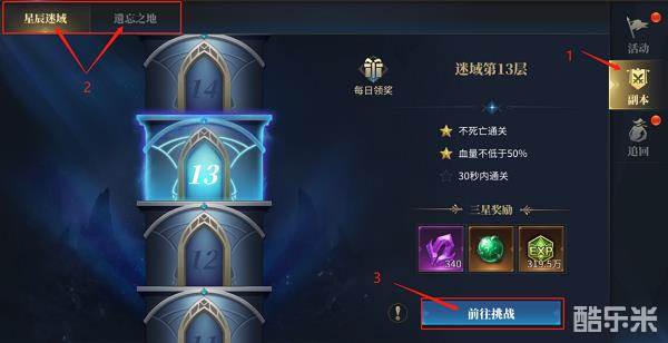1.点击界面上方的日常活动图标 2.切换至副本界面 3.选择对应副本前往挑战