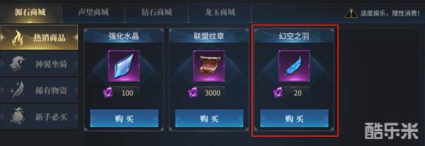 3.源石商城购买:在源石商城花费20源石可购买1幻空之羽。
