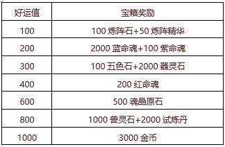 【活动内容】活动期间,每消费1000金币,即可获得100好运值,累计获得好运值可开启奖励宝箱。