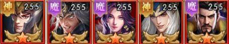 这是四保一的阵容,神姜维加上神诸葛亮的辅助效果,最大化提升魔曹操的输出能力,再加上魔张春华的【脆弱】效果让对方所受伤害增加,实现魔曹操的清场效果,简单而暴力。