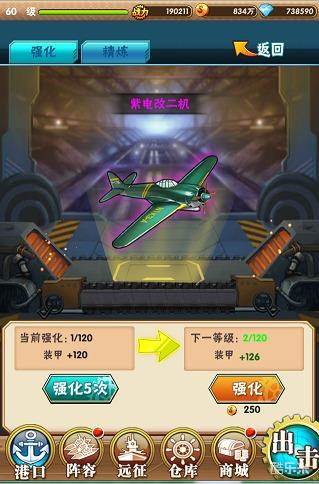 5、舾装强化方面同理于舾装精炼,优先一套达到舾装舰船强化等级要求之后,再进行另一套的强化。