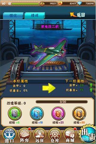 3、前期不要太执着于高品质的舾装,出装总需要有个过渡期,一步一步来能避免舾装等级强化不起的尴尬局面。当然钻石跟钢铝充足的玩家可以适当的进行跨越式选择。