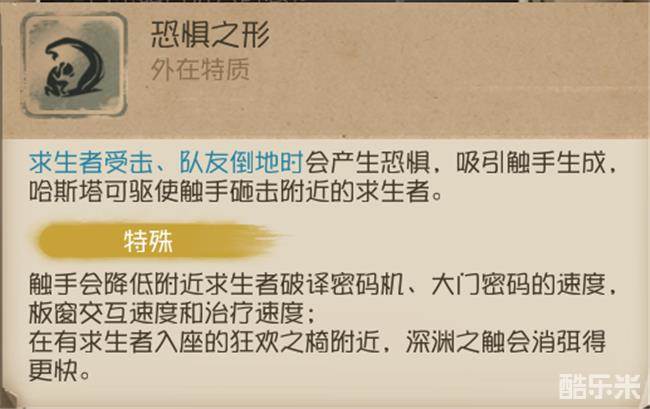 ★实战注意:对局中可以通过观察深渊之触是否在持续充能来判断恐惧半径范围内有没有求生者,以此来代替天赋【耳鸣】。