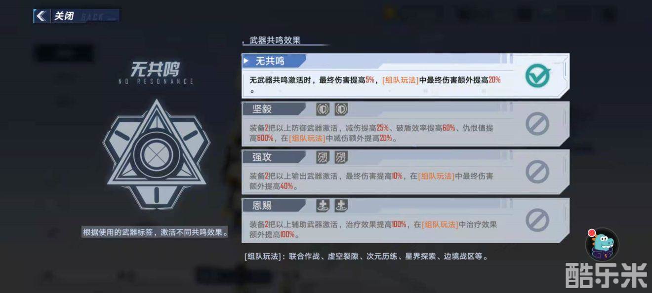后续SSR武器多了也可以根据这个原则进行配队换上更优秀的破盾位置和物理重伤位或者携带合适的充能辅助位,注意不管什么配队尽量触发共鸣效果会更佳。