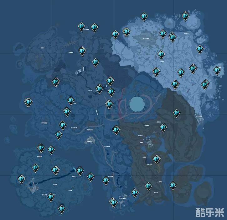 1、冰矿石是一种比较常见的资源,在全地图基本都有分布,玩家们可以参考下图标记的点位来规划采集路线: