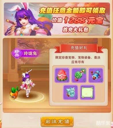 同时,充值任意金额还可以获得首充礼包,除了内含的丰富奖励之外,还可以得到一只珍兽玲珑兔。