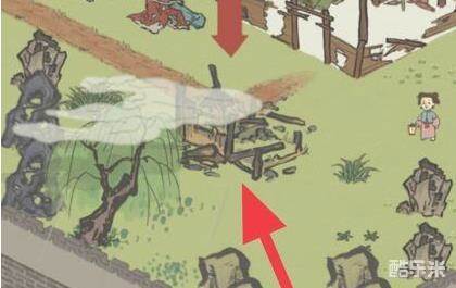 3、根据任务指示箭头位置找到任务地点,点击废墟。