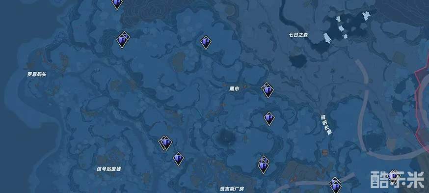 1、雷矿石在游戏内的分布位置大致如下图所示,主要是分布在克罗恩地区以及班吉斯地区。克罗恩地区的分布图如下: