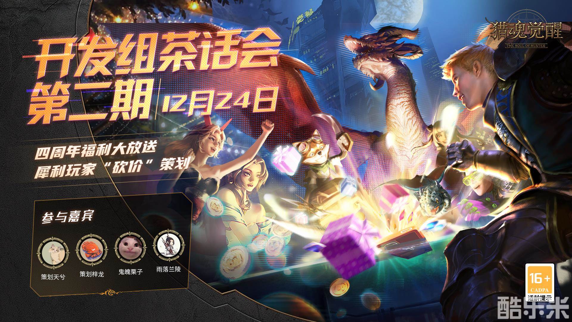 随着新年将至,《猎魂觉醒》四周年庆典正式官宣定档2022年1月6日!此外,第二期开发组茶话会也即将上线,据说这次将由玩家代表与策划进行谈判,为广大游骑兵争取新年福利!海量周年庆福利即将陆续揭晓,大家快来一起期待吧!