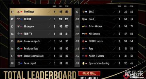 来到最后一天,HERO上来就展示了自己必胜的决心,首局拿下17个高淘汰数,并在第三局中再次拿下14个淘汰。来到最后一局,HERO战队看到NH战队陷入战斗,果断上前收下NH战队。但随着圈形刷新,HERO战队被NAVI和GEX包围并被淘汰。虽然HERO战队仅以4分之差最终与冠军失之交臂,但他们所展现出来的统治力令人们大为所叹。