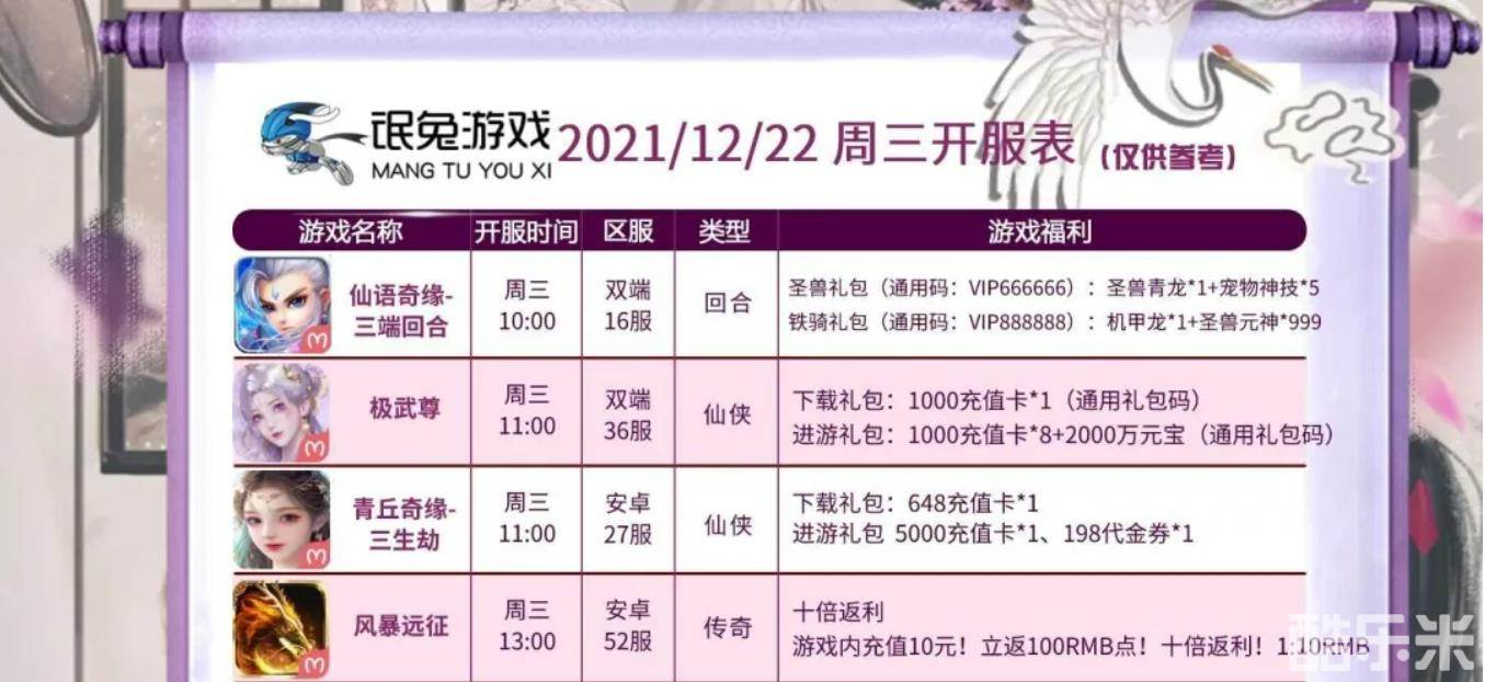 | 仙语奇缘-无限抽 | 天下16区( 苹果- 安卓) | 2021-12-22 10:00:00 |