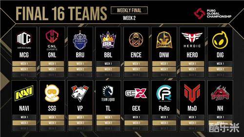 【Krafton Inc.旗下PUBG工作室】信者永恒,竞绽光芒!Krafton Inc. 旗下PUBG工作室举办的PGC 2021(PUBG GLOBAL CHAMPIONSHIP 2021,简称“PGC 2021”)全球总决赛第二周的比赛已经落幕。TL战队凭借两天稳健的发挥,收获50个淘汰,并以81分摘得了本周的周冠军。GNL战队同样收获了50个淘汰与81分,但以吃鸡数的劣势屈居第二。欧洲冠军VP战队一转上周的颓势,以74分位居第三。来自中国台湾的GEX战队本周手感火热,拿下68分排名第四,并收获了全场最高的52个淘汰。PCL赛区的三支队伍MCG、NH和PeRo战队均有吃鸡入账,分别位列第五、第八和第十一名。