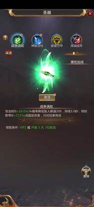 冒险家角色等级达到18级开放圣器系统,游戏内达到VIP2、VIP4、VIP6、VIP8,或区服开放3天、7天、15天、30天解锁战争漩涡、神秘法杖、振奋刃甲、深渊战斧。