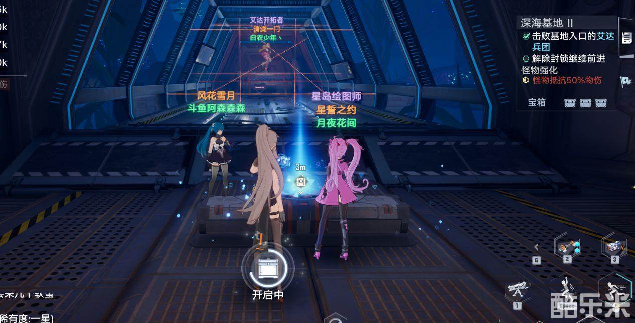 领取宝箱后,需要由一个队友通关激光阻拦,才能开启通往下一关的通道。