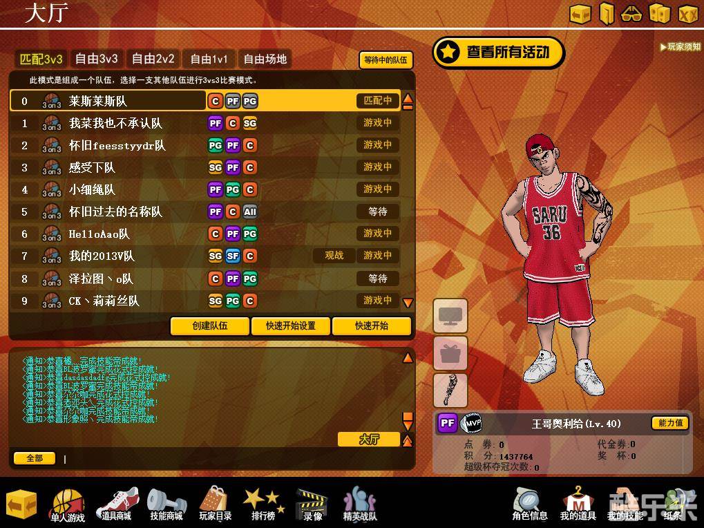 我们的第一场比赛很顺利,我当时记得老版本没有现在那么多好看的能力道具和装饰,于是我们各自就穿的简易半袖短裤(好像是蓝色半袖,黑色短裤,黑鞋)上场打可我们第一场处子秀,那个配合相当厉害,尤其是我中锋,全场20多个篮板,那叫个过瘾啊。