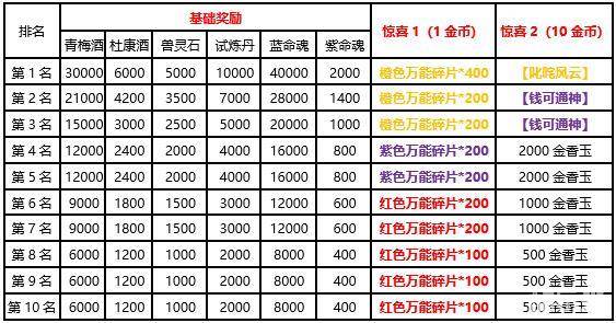 2.本期单服消费排行榜奖励为特殊制定,与往期排行榜奖励略有不同;