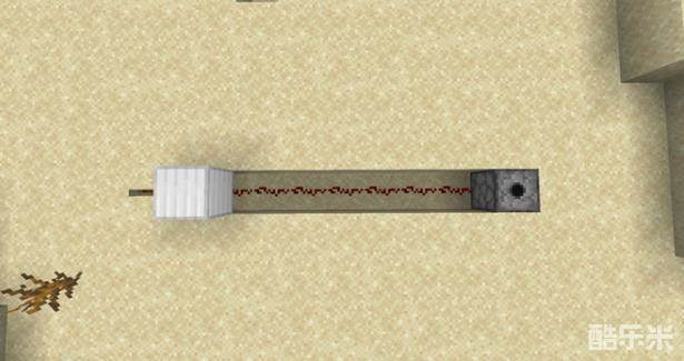 1、首先做一个简单的点火装置,在地表下一格放置发射器,并在里面放一个打火石,在线路末端放一个铁块和拉杆。