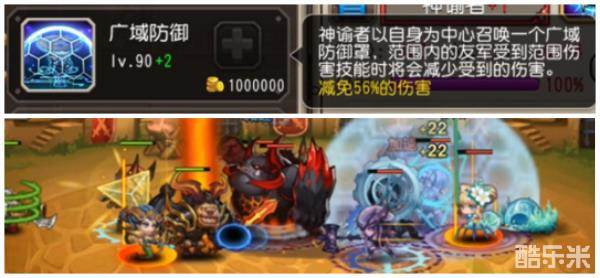 广御防御是一个防护技能,减伤56%,个人认为这个技能是对于中排虚空与幻刺的保护。这两个英雄输出能力很强,但是也容易被控制致死,有了这个防护与其他加血技能,配合这两个英雄都非常合适。